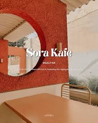 Sora Kafe dikenal dengan konsep tempat yang modern dan instagramable. Desain interiornya memiliki perpaduan warna cerah sehingga sering menjadi spot foto bagi pengunjung. Selain menyediakan berbagai jenis kopi, kafe ini juga menawarkan menu makanan seperti camilan, salad, hingga makanan utama. Tempat ini cocok untuk nongkrong santai bersama teman ataupun sekadar menghabiskan waktu di akhir pekan.