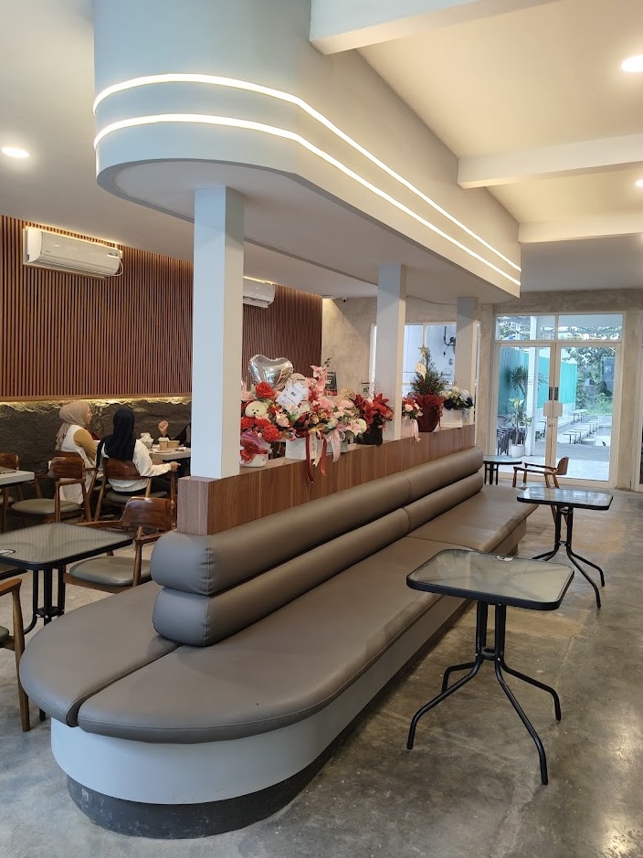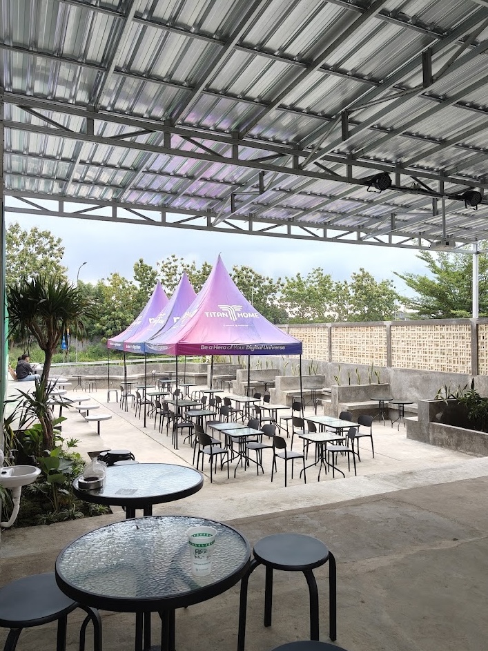 Secara visual, kafe ini menawarkan suasana yang modern dan estetik dengan sudut-sudut ruangan yang dirancang nyaman serta pencahayaan lampu yang lembut. Area duduknya terbagi menjadi ruang indoor yang bersih dengan desain kontemporer serta area outdoor yang luas dengan pemandangan Jalan Tol yang kerap digunakan untuk spotting kendaraan-kendaraan unik. Menu yang ditawarkan pun cukup beragam dan terjangkau, mencakup aneka pilihan kopi, minuman berbasis susu, teh, hingga hidangan makanan berat yang bervariasi, menjadikannya tempat yang lebih dari sekadar tempat ngopi biasa.